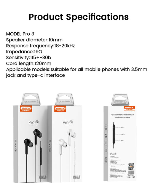 Auriculares Manos Libres Somostel Pro 3 - Tipo C