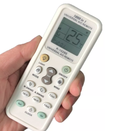 - Control remoto universal, lo que indica que se puede programar para controlar diferentes marcas y modelos de aires u otros dispositivos compatibles.